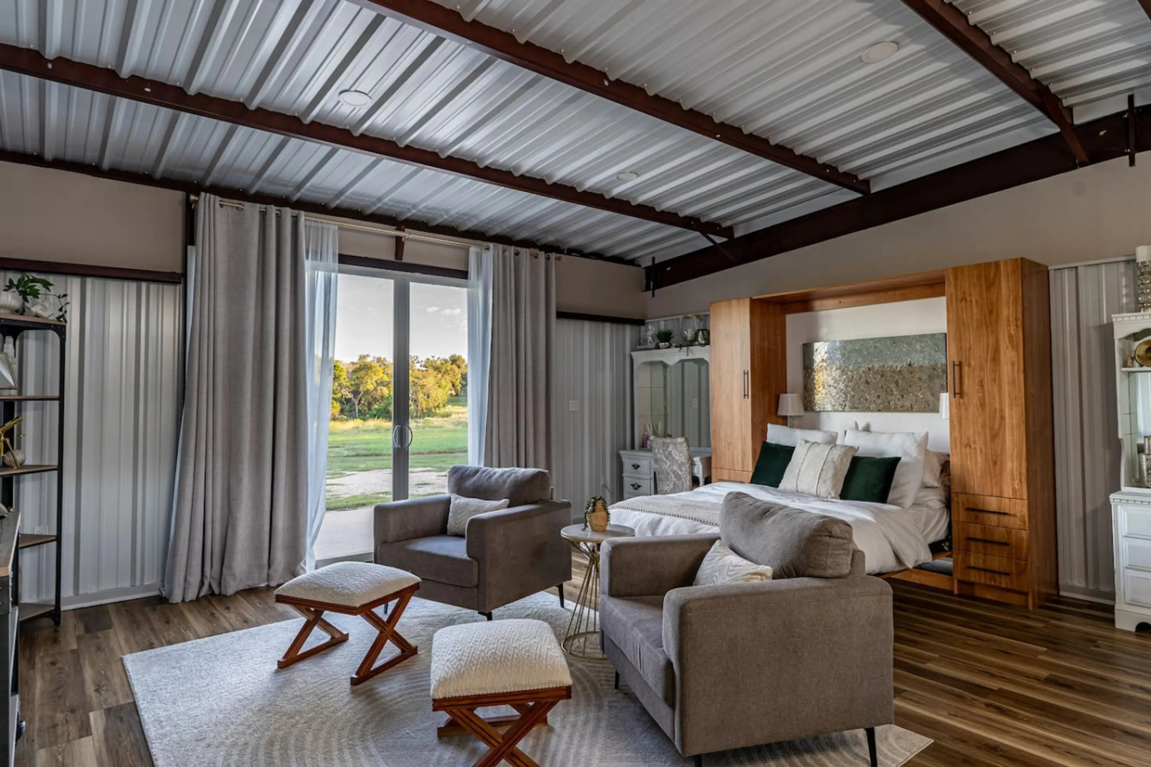 Discover modern luxury in our spacious studio, nestled in Texas countryside, on 32 pristine acres. Ideal for a romantic getaway, it offers comfort and sophistication with picturesque window views. Step outside to embrace nature, whether you're an outdoor enthusiast, seeking a countryside stroll, or ...